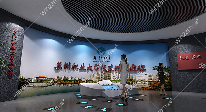苏州市职业大学坐落于美丽的石湖之畔,学校建于1981年,前身是创办于1911年的苏州工业专科学校。100多年的办学历史,精英辈出。展馆不仅展示了本校的办学历程及所育人才,还展示了本校围绕苏州经济创新驱动,积极对接苏州建设先进产业基地、科技创新高地的要求,为地方产业升级、经济转型、文化研究和城市管理做出的贡献。