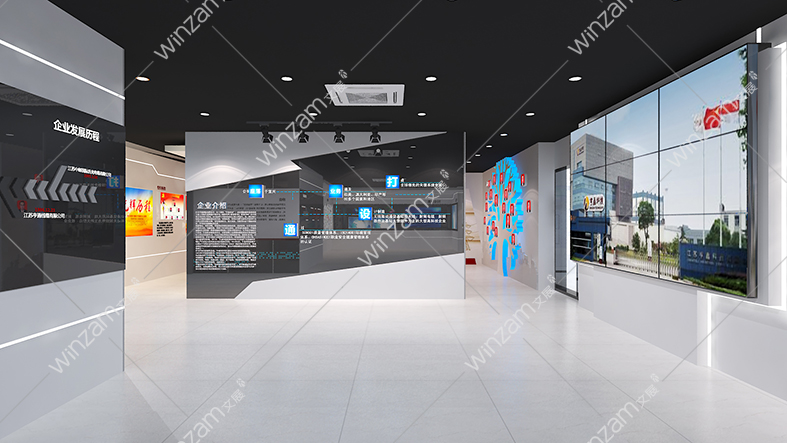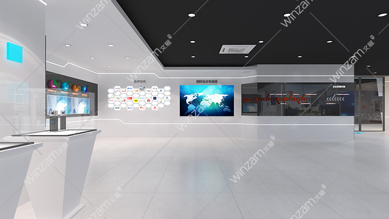 江苏亨鑫科技有限公司是在新加坡和香港两地主板上市的亨鑫科技有限公司在中国设立的全资子公司,是一家以设计、制造无线移动通信基站用天线、射频电缆、射频元器件及基站天馈组件为主的大型高科技企业。展厅整体空间设计舒朗大气,内容脉络完整,展陈手段多元,充分体现了亨鑫科技的国际化视野。
