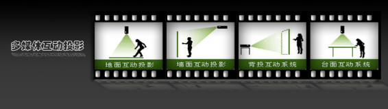 互动投影系统可以是单投影机、单摄相头图像扑捉分析的小型互动投影系统,也可以是多投影机多通道边缘融合系统加多摄相头图象扑捉分析的大型互动投影系统。