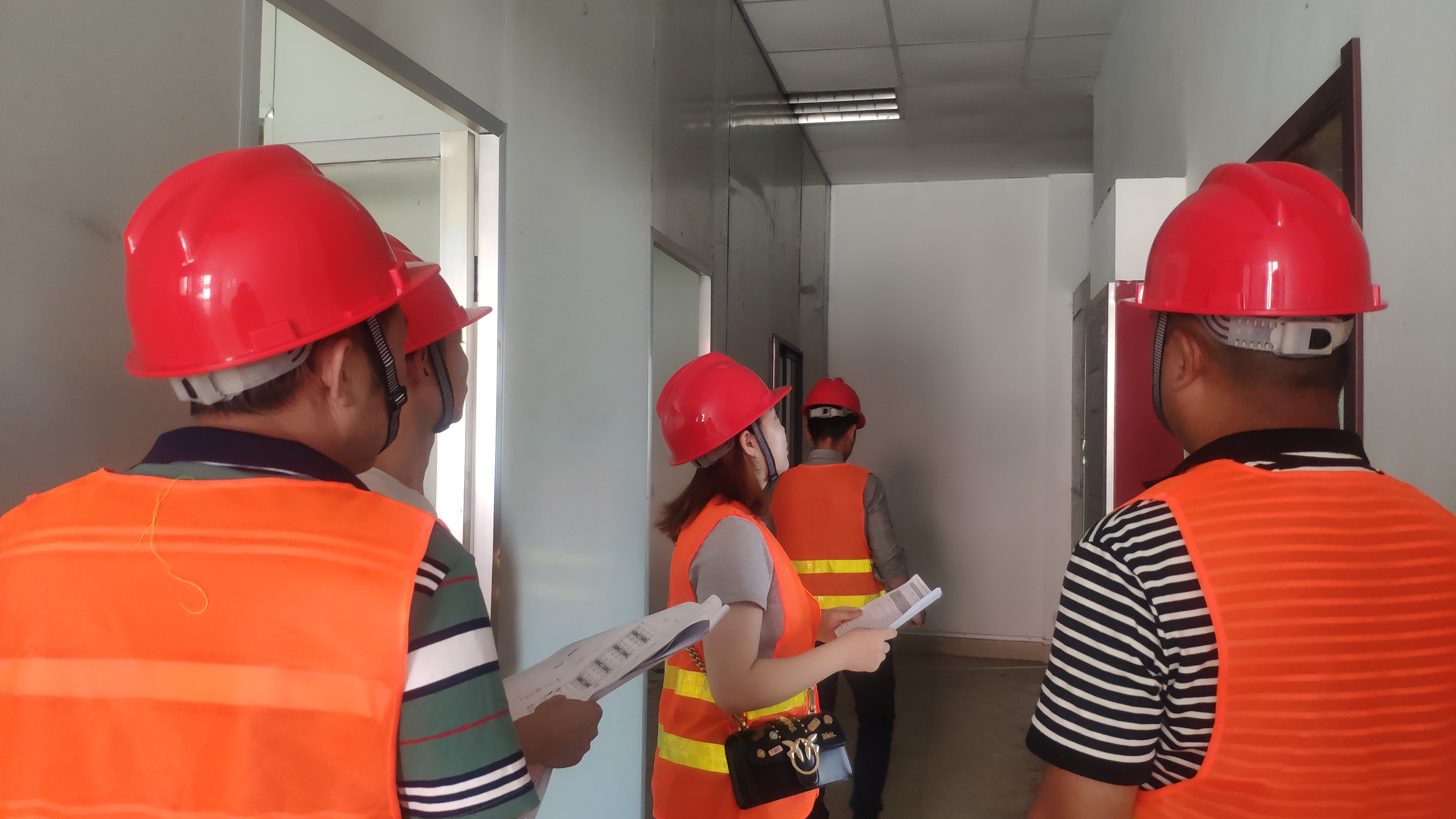 此外,工程部项目经理还带领着施工队长实地查看了工地的安全设备,着重强调了施工安全方面的诸多注意事项。