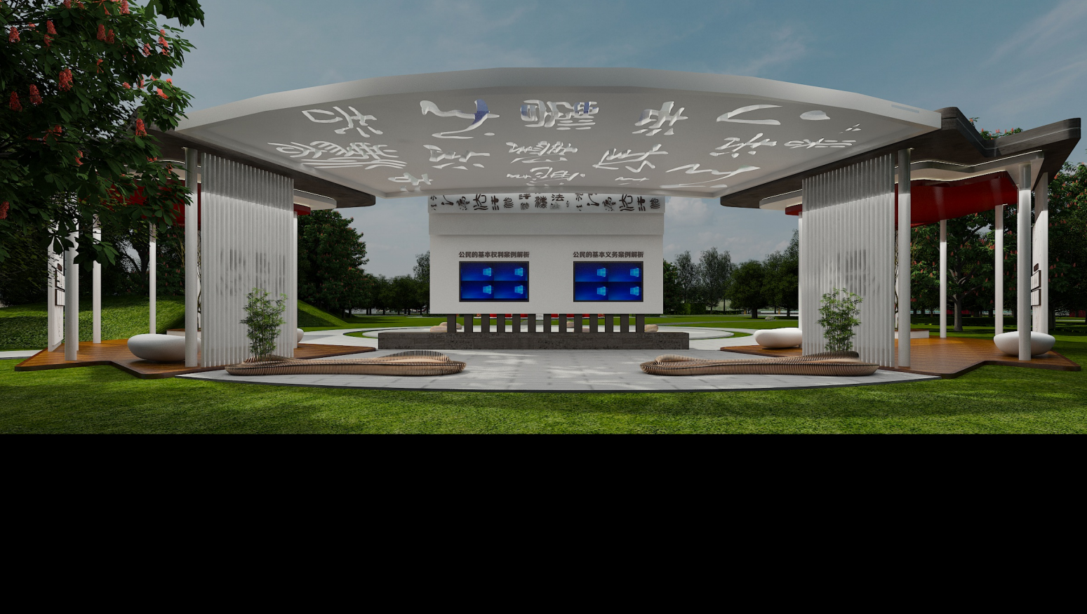 江苏文展设计团队秉承宪法元素与自然景观深度融合的“法治、生态、人文”设计理念;融入了主题雕塑、景观小品、多媒体展示、灯光和展示牌等设施;打造“文化的、亲民的、特色的、有颜值、有趣味”的宪法文化广场,让市民朋友在惬意的休闲环境中感受宪法精神和学习法治文化。