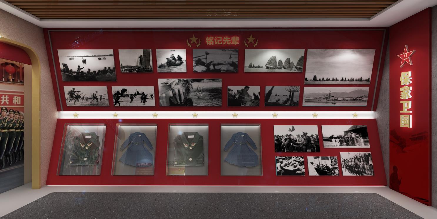 展馆的建设面积约240平方米,馆内共分为“英雄长廊”、“参军入伍”、“保家卫国”、“大国重器”、“荣耀之光”、“退役军人之家”等诸多板块。文展团队主要以史实和史料为依据,用图文、老物件、场景模型、雕塑等形式,借助现代化的展陈手段,按照历史的发展脉络,翔实地反映了我国国防事业的发展之路,同样也展示了竹行街道为共建共建共融的军民鱼水情。