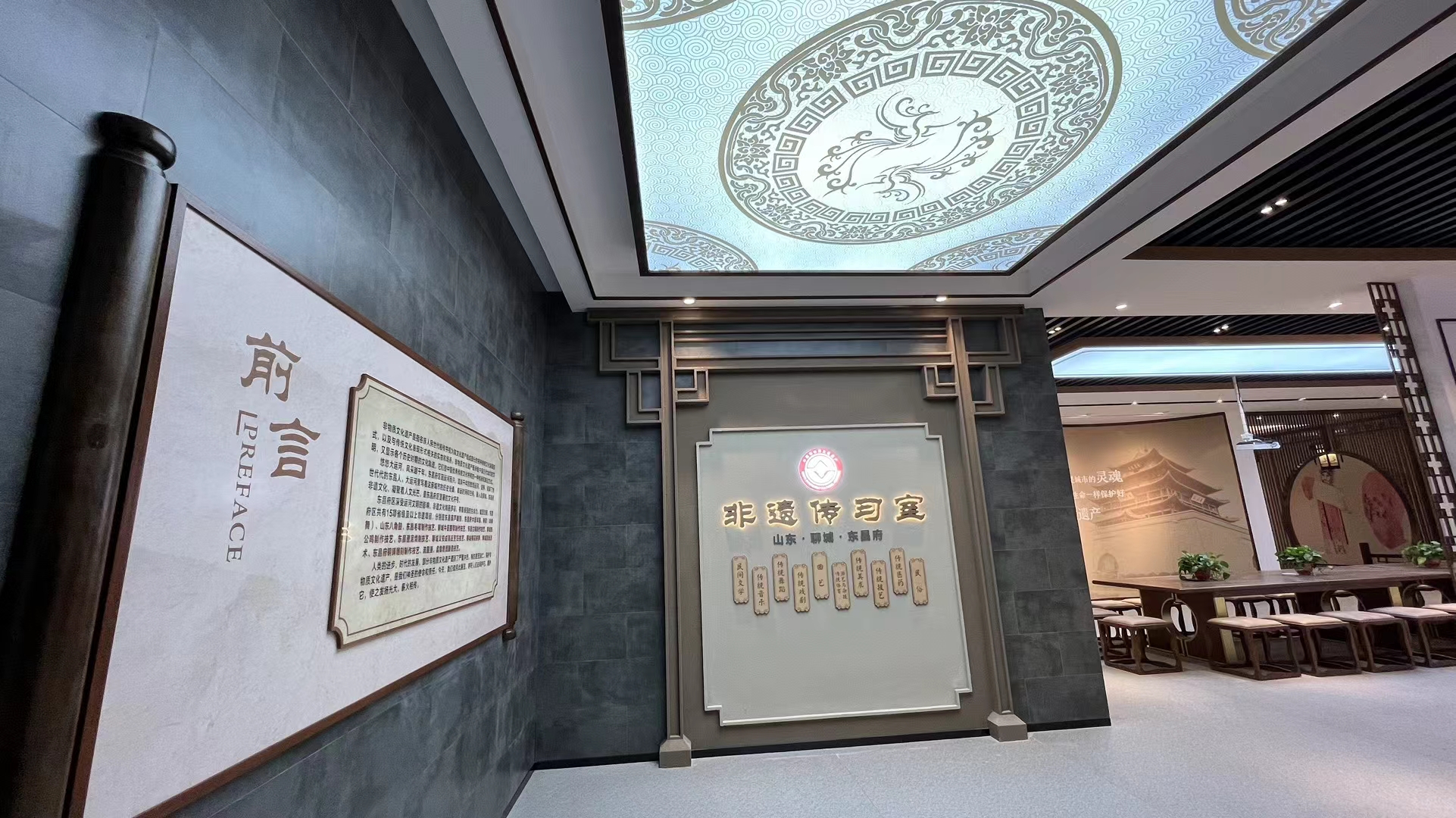 展馆以东昌府国家级、省市级等各级非遗名录为核心,重点讲述了“口头文学、传统艺术、传统技艺、礼仪民俗、体育游艺、能工巧匠室、大师工坊”等非遗技艺和相关传承人,运用现代化展示空间的科学规划和巧妙布局,视觉震撼,情感迸发。还通过对东昌府非物质文化遗产的实物展示及保护工作,展示出聊城丰富的非遗文化和非遗工作经验及成就。