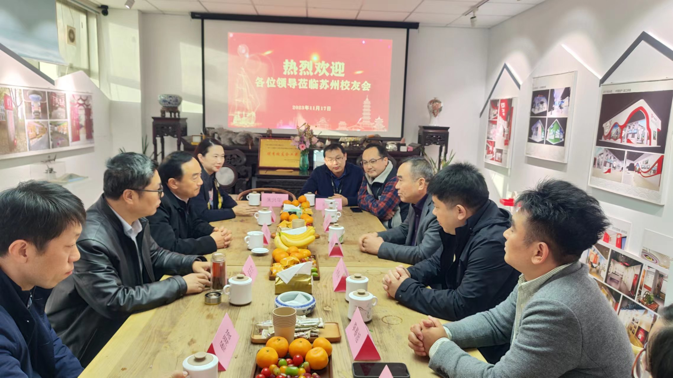 江苏文展总经理李春旭代表苏州校友会向吴学敏书记和其他校领导的到来表示热烈的欢迎,并细致介绍了江苏文展的发展历程、主营业务和优秀项目案例,希望母校与公司全方位多角度加强合作,为公司输送更多优秀毕业人才。