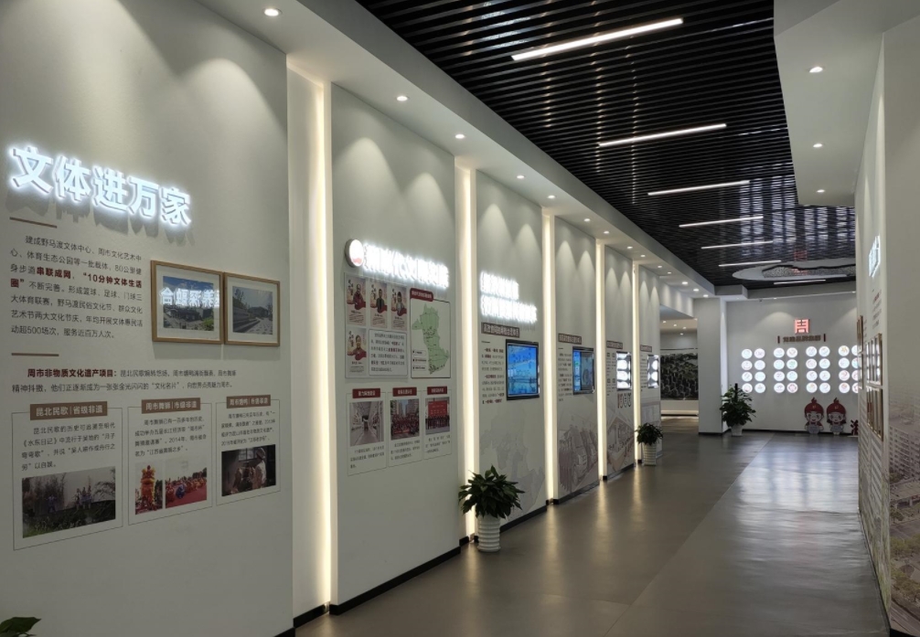 昆山市周市镇高质量发展馆布展区域约810平方,展陈部分共分为6大区域,包括序厅、“千帆竞发,经济腾飞”、“活力四射,和谐宜居”、“践行初心,枝叶关情”、“市关百业,周全生活”、“乘风破浪,扬帆远航”等部分。